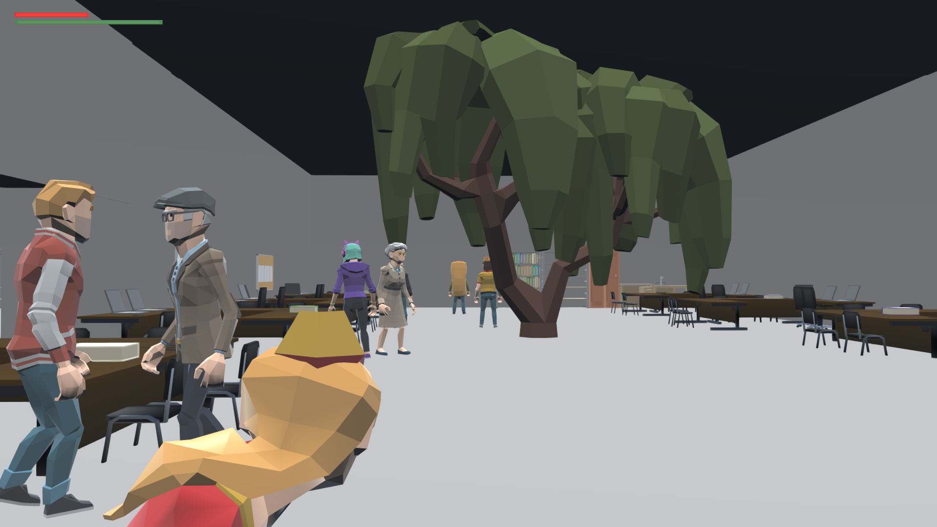 To speed up our prototyping process, we used the Polygon asset packs by Synty Studios. Their low-poly style was perfect for quickly building out the classroom props and surrounding environments without getting stuck on complex modeling (that’s why we have a random tree in the middle of the class). It let everyone focus on learning the core tools and mechanics without getting overwhelmed.